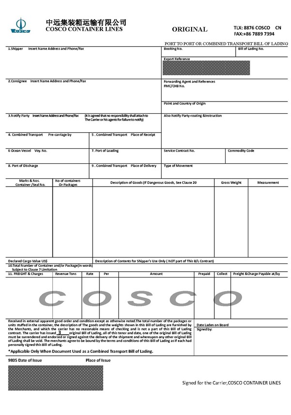 提單 Bill of lading