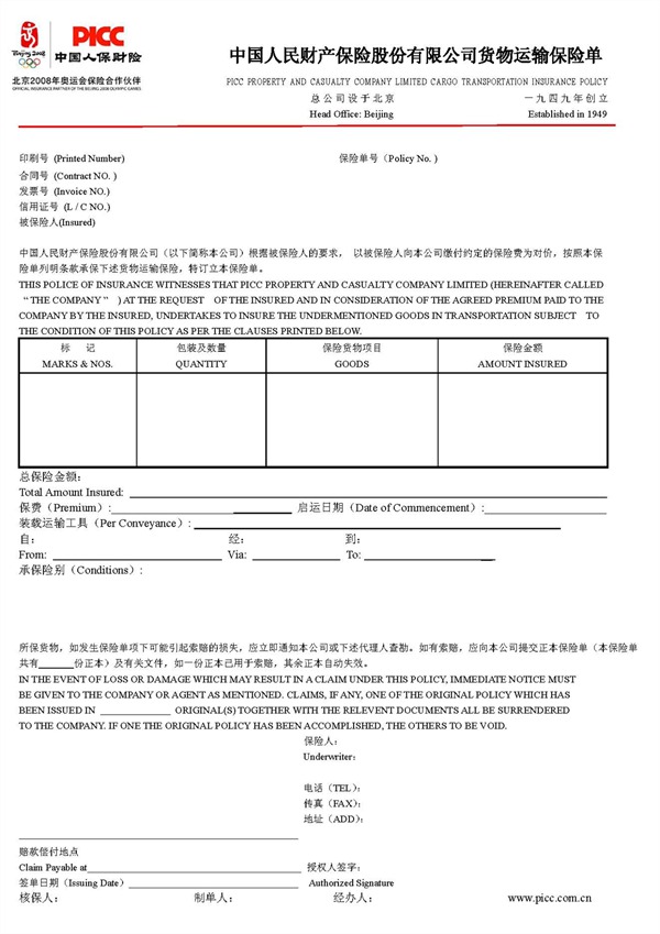 保險(xiǎn)單 Insurance policy